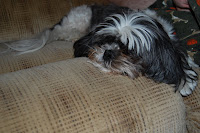 Mom and dad stopped by yesterday and took us to lunch and then spent the afternoon here with us just relaxing and enjoying the kids. Mom left me some osnaburg fabric to try my hand at the stitchery she has been doing...you can check them out at her blog http://www.brensbusyhands.blogspot.com/. Now I just have to find a pattern and see if I can do it. I love how hers have come out and hope that mine look even half as good. The boys absolutely had a blast while they were here and the girls got to run around a bit and let off some energy. Of course Samson was none to happy and seems to be recouping today...think he got overstressed yesterday cause he is just laying around today. Poor guy. Maybe letting them run around in his living room was a little too much for him. lol